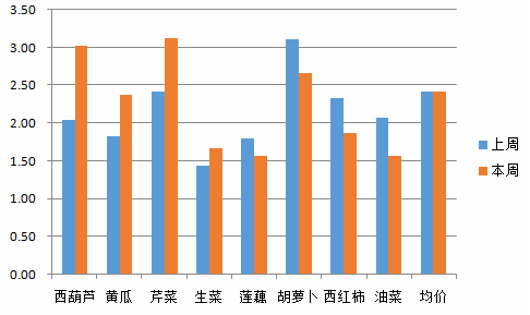 原因:本地大棚蔬菜供應(yīng)不足,外運蔬菜量大量增加,出貨量大,上周貨源量減小,而且正處于換擋季節(jié),部分蔬菜上市量減少,西葫蘆、黃瓜等已經(jīng)過了大量上市的季節(jié),剩余的貨量較小,造成價格上漲。蓮藕環(huán)比下降12.70%,胡蘿卜環(huán)比下降14.22%,西紅柿環(huán)比下降19.63%,油菜環(huán)比下降24.14%。